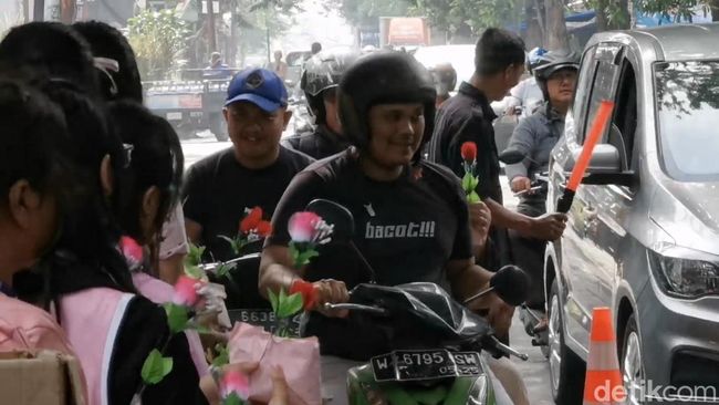 Simak Video "Video: Aksi Damai Driver Ojol Berbagi Bunga Mawar"