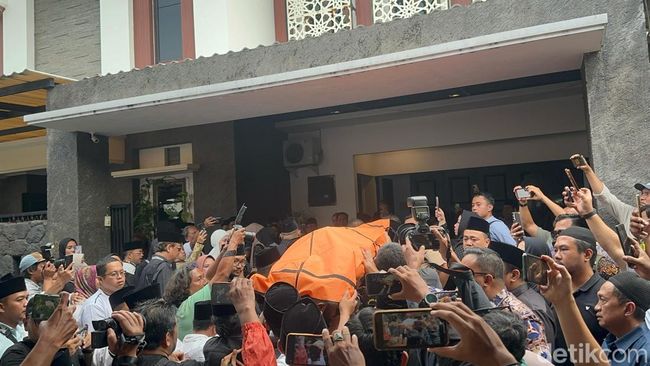 Tampak Ketua DPD Demokrat Jatim Emil Elestianto Dardak bersama Istri Agus Harimurti Yudhoyono (AHY), Annisa Pohan menyambut kedatangan jenazah. Isak tangis dari keluarga Renville mewarnai kedatangan jenazah di rumah duka.