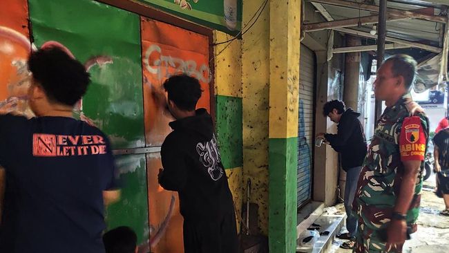 "Tadi malam mereka sudah membersihkan grafiti buatan mereka sendiri di dua toko. Satu di toko laundry dan satu lagi toko parfum milik warga sekitar," ungkap Ketua RT 08 Taufik saat dihubungi detikJatim, Senin (17/2/2025).