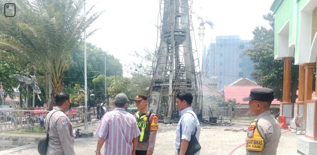 Sementara untuk penyebab kebakaran, polisi menyebut kebakaran terjadi diduga karena korsleting pada instalasi listrik pengeras suara yang ada di atas menara.