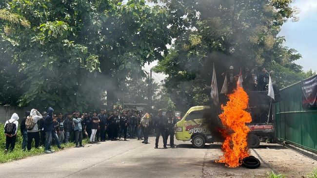 Di bawah terik matahari, massa membakar beberapa ban sepeda motor bekas. Sehingga panas kian menyengat. Tak lama kemudian, polisi memadamkan ban yang dibakar menggunakan apar. Namun, tak seorang pun manajemen CV Anugerah Baja Inti yang menemui massa.