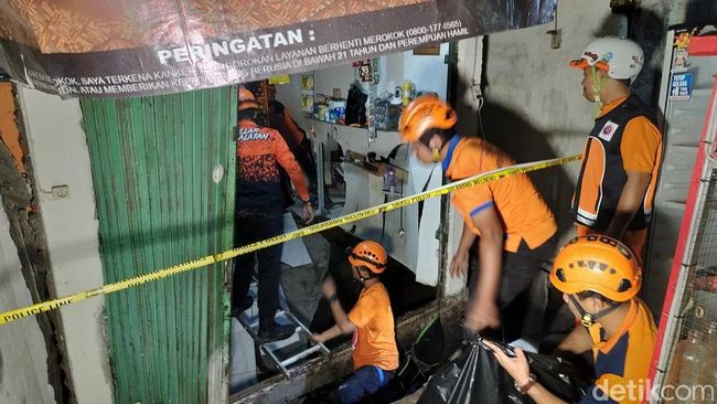 "Saya lagi kerja parkir tadi, sekitar setengah empat sore. Saya lihat toko itu ambles. Saya lari ke toko, anaknya (korban) sudah tercebur ke gorong-gorong. Karena lantainya ambrol," ujar Agus.