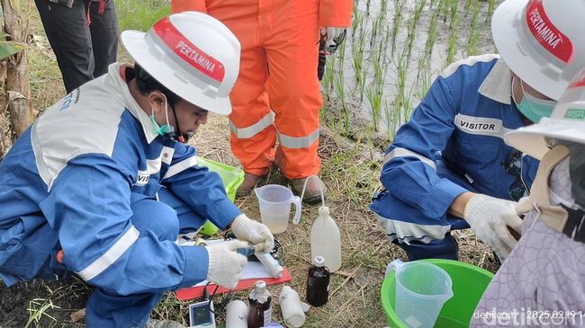 Petugas gabungan ini melakukan pengecekan hingga pengambilan sampel pada beberapa titik lokasi dia area dalam sekitar sumur minyak dan aliran irigasi yang diduga tercemar limbah kimia dan solar yang mengalir dari dalam area lapangan minyak Sukowati.
