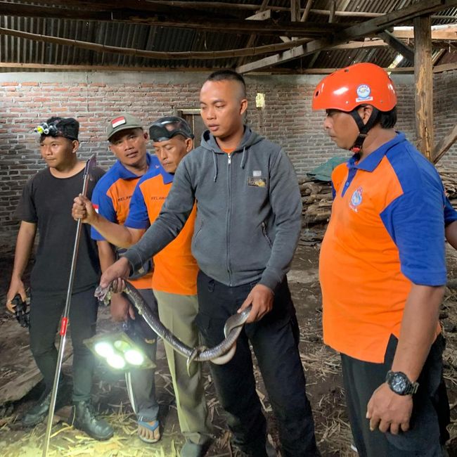 Sebelumnya, petugas BPBD dan relawan dari Exalos Indonesia melakukan penyisiran hingga menemukan sarang kobra. Ular kobra itu bersarang di gudang bekas penggilingan padi yang lokasinya berdempetan dengan rumah Karti, tepatnya di bagian belakang rumah utama.