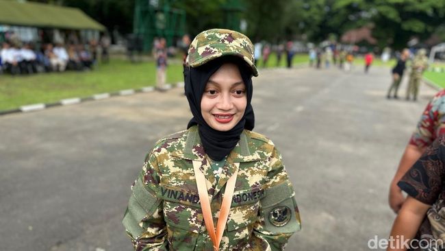 Vinanda Prameswati diantar protokol Pemerintah Kota Kediri dan keluarga usai sehari sebelumnya dilantik Presiden Prabowo, di Istana Merdeka, Jakarta. Saat tiba dengan pakaian Komcad TNI lengkap banyak pengantar lain yang langsung memintanya berfoto.