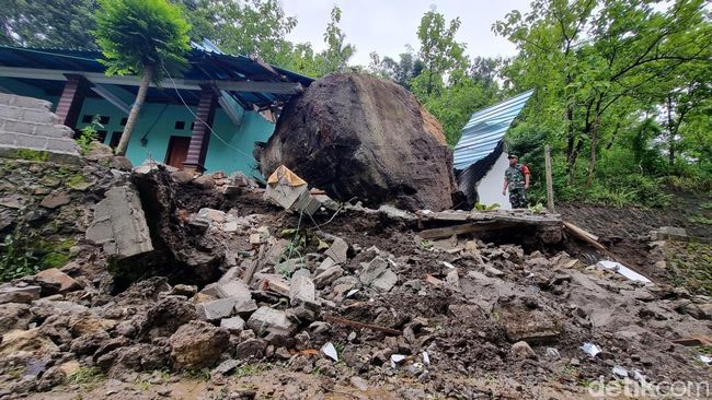 "Karena kondisi hujan deras, akhirnya batu besar itu jatuh yang punya rumah memang kurang memahami kalau ada batu besar d ibelakang rumahnya,"pungkas Winaryono.