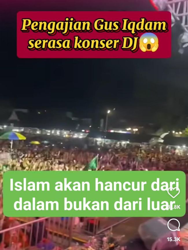 Viral di media sosial, pengajian yang dipimpin oleh Muhammad Iqdam Kholid, atau yang lebih dikenal sebagai Gus Iqdam, viral karena disebut menyerupai konser dengan pembukaan menggunakan musik DJ.