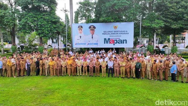 Memulai hari pertama kerja sebagai Wakil Wali Kota Kediri, KH Qowimuddin langsung memimpin apel pagi di Halaman Balai Kota Kediri, Senin (24/2/2025). Apel ini diikuti oleh Sekretaris Daerah Bagus Alit, para asisten, kepala OPD, lurah, ASN Pemerintah Kota Kediri, serta direktur BUMD Kota Kediri.