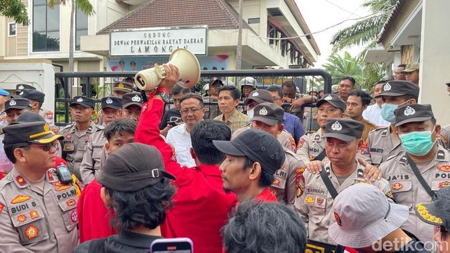Puluhan mahasiswa ini memulai aksi dengan mendatangi kantor Pemkab Lamongan dan berakhir di gedung DPRD Lamongan. Puluhan mahasiswa itu menuntut presiden mencabut Instruksi Presiden (Inpres) Nomor 1 Tahun 2025 tentang efisiensi anggaran.