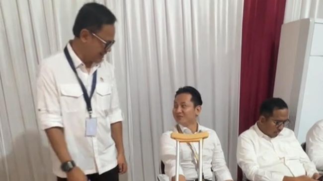 Bupati Arifin tampak berbincang dengan Bima dengan posisi duduk di kursi bersanding dengan tongkat kruk. Sedangkan Bupati Dhito juga sekilas muncul saat bersalaman dengan Wamendagri.