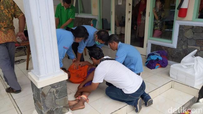 Dengan sigap tim RSJ Lawang dan beberapa petugas lainnya langsung mengamankan pasien dan mengikat tangan dan kakinya. Selanjutnya pasien disuntik dengan obat penenang.