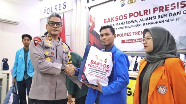 "Mahasiswa adalah generasi muda.yang ke depan akan menggantikan para pemimpin bangsa mulai dari tingkat pusat hingga daerah. Kami berkolaborasi bersama elemen BEM perguruan tinggi maupun organisasi mahasiswa ekstra kampus yang ada di Trenggalek untuk bersama-sama mengabdikan diri untuk masyarakat melalui aksi kemanusiaan ini," kata Kapolres Trenggalek AKBP Indra Ranudikarta, Kamis (27/2/2025).