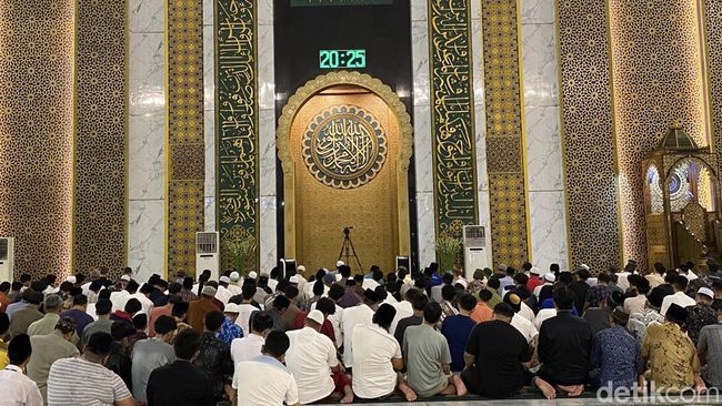 Derasnya hujan tidak menyurutkan semangat jemaah masjid Al Akbar Surabaya untuk melaksanakan salat tarawih pertama Ramadan 1446 H. Mereka melaksanakan ibadah dengan khusyuk.