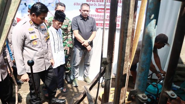 Kapolres Kediri AKBP Bimo Ariyanto menuturkan bantuan sumur bor ini diharapkan bisa memberikan manfaat bagi masyarakat sekitar.