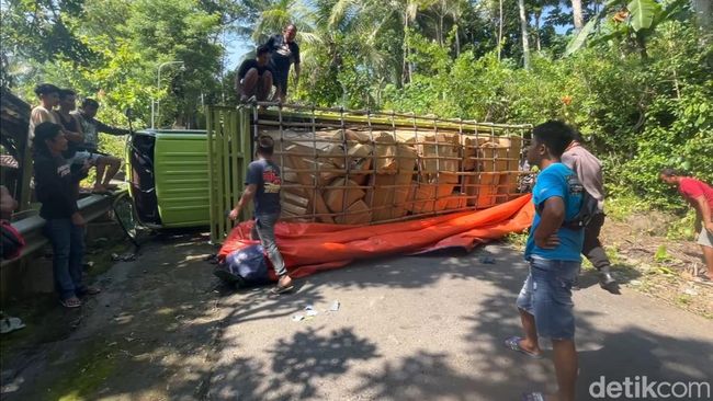 Sebuah truk tronton mengalami kecelakaan saat melintas di jalur ekstrem Kampak-Dongko, Trenggalek. Truk mundur dan menabrak sepeda motor hingga terguling.