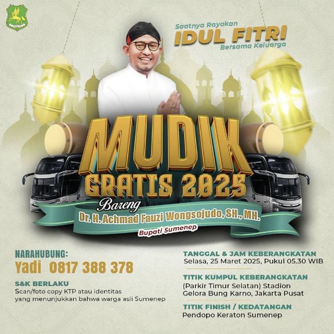 "Melalui program ini, kami ingin meringankan beban mereka yang ingin Lebaran di kampung halaman, sekaligus mempererat silaturahmi antarwarga Sumenep," ujar Bupati Fauzi.
