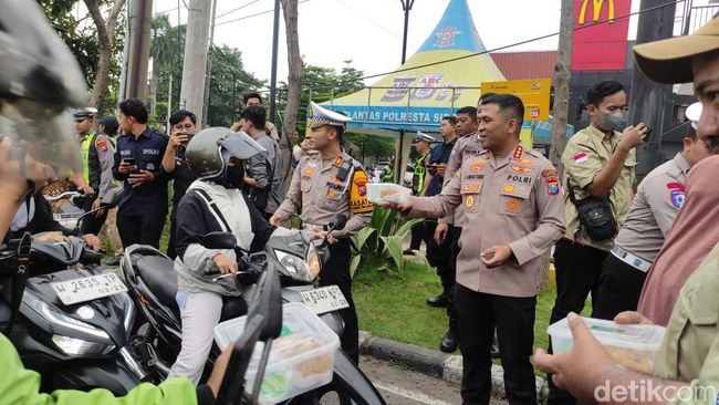 Selain membagikan takjil, polisi juga memberikan edukasi tertib berlalu lintas. Petugas dengan ramah menyapa dan menyerahkan paket takjil kepada pengendara baik roda dua dan roda empat yang melintas.