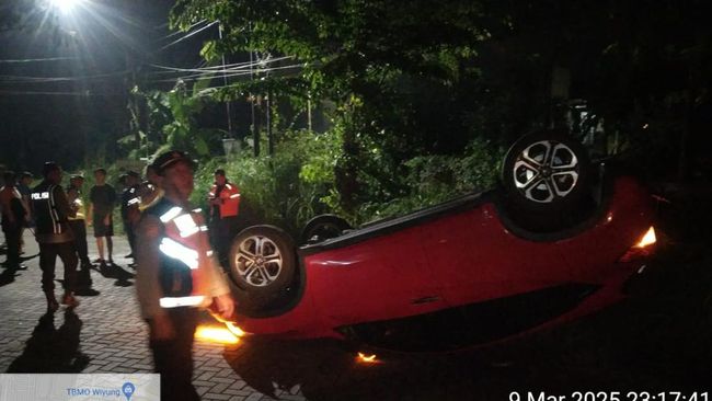"Pengemudi tidak mengetahui adanya pembatas jalan dan akhirnya menabrak pembatas jalan hingga mobil terbalik," ujarnya.