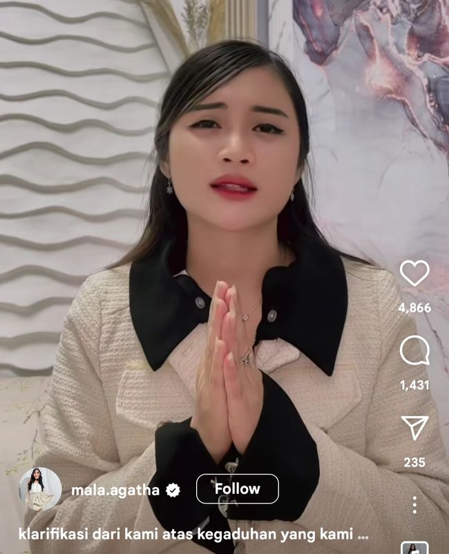 Sebagaimana dilihat detikJatim, Senin (10/3/2025), permintaan maaf itu disampaikan melalui sebuah video di akun instagram @mala.agatha.