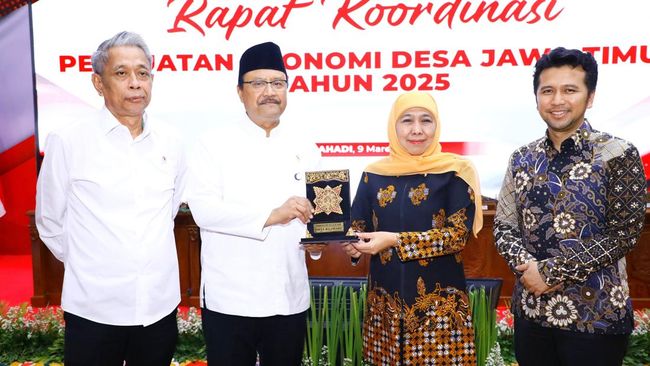 "Intinya kami bersama seluruh Bupati Wali Kota siap menjalankan program Sekolah Rakyat di Jatim. Untuk itu hari ini secara khusus kami mengundang langsung Mensos RI dan Bapak Muhammad Nuh sebagai Ketua Tim Formatur untuk mendetailkan program SR ini," ujar Khofifah saat Rapat Koordinasi Penguatan Ekonomi Desa bersama Bupati/Wali Kota se-Jatim dengan Menteri Sosial RI Saifullah Yusuf di Gedung Negara Grahadi, Surabaya, Senin (10/3/2025).