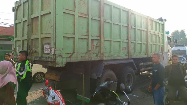Uci Sukartya (42), tertabrak truk tronton di jalur arteri Jombang saat mengantar anaknya sekolah. Ibu dan anak ini tewas seketika karena terlindas truk tronton tersebut.