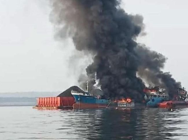 Dua kapal, tongkang Tug Boat Roselyne 08 dan kapal MT Ronggolawe, terbakar. Kedua kapal meledak setelah terdengar ledakan hebat di perairan Laut Utara Paciran pada Kamis pagi (13/3/2025) sekitar pukul 06.17 WIB.