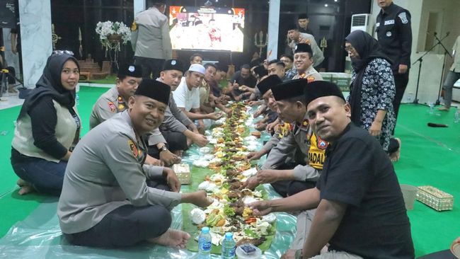 Polres Mojokerto menggelar buka bersama (bukber) bareng media dengan tema Polri untuk Masyarakat. Polisi bersama wartawan menyantap menu nasi liwet yang melambangkan kesederhanaan dan kebersamaan.