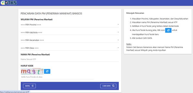 - Buka situs resmi Kemensos: cekbansos.kemensos.go.id.