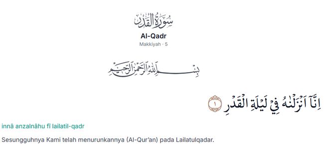 Artinya: Sesungguhnya Kami telah menurunkannya (Al-Qur'an) pada Lailatulqadar.