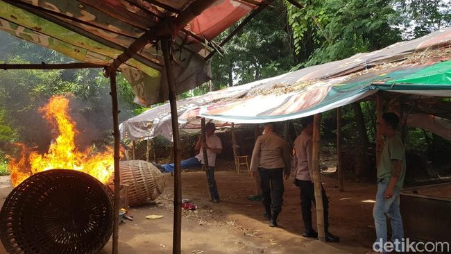 Mulai dari kursi plastik, karpet, papan tulis, kabel dan lampu hingga kurungan ayam. Semuanya lantas dibakar di lokasi. Sedangkan 10 buku untuk merekap dan peralatan dadu disita polisi sebagai barang bukti.