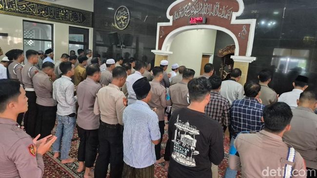 Salat gaib dan doa berlangsung di Masjid AT-Taqwa Polres Pasuruan Kota, Selasa (18/3/2025) setelah salat zuhur berjemaah. Salat dipimpin Ustaz Khisom yang turut memberikan tausiyah mengenai keutamaan pengorbanan dalam tugas dan makna jihad bagi keamanan serta keselamatan masyarakat.