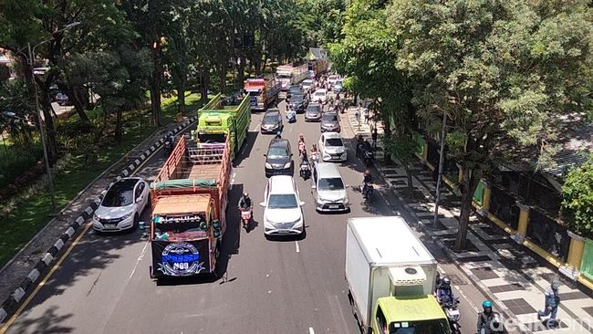 Hingga pukul 10.50 WIB, puluhan truk melewati kawasan Diponegoro. Sebab, kawasan Jalan Darmo ditutup.