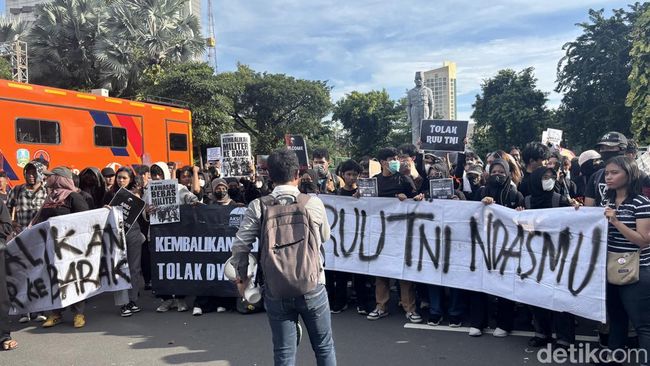"Kami setuju, tidak ingin kembali ke masa kelam supremasi militer yang ada di wilayah Indonesia. Oleh karena itu berkumpulnya kami di sini untuk menolak RUU TNI," ujar salah satu orator, Kamis (20/3/2025).