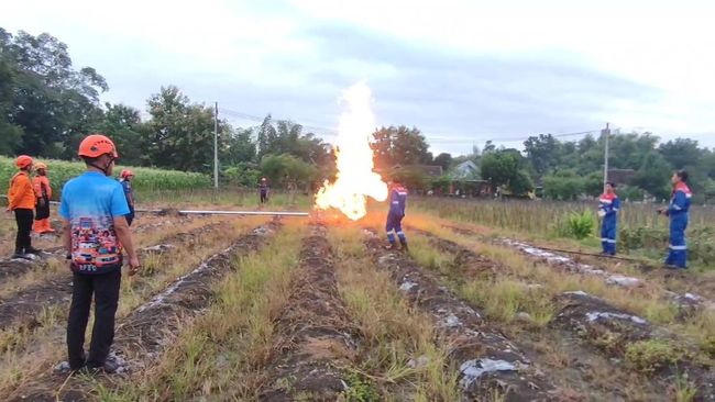 "Iya mulai sore tadi ada Gas flaring (pembakaran gas) untuk membuang gas rawa yang keluar ketika pengeboran sumur air di halaman masjid yang dilakukan oleh pihak Pertamina," kata Agus Purnomo, Sabtu (22/3/2025).