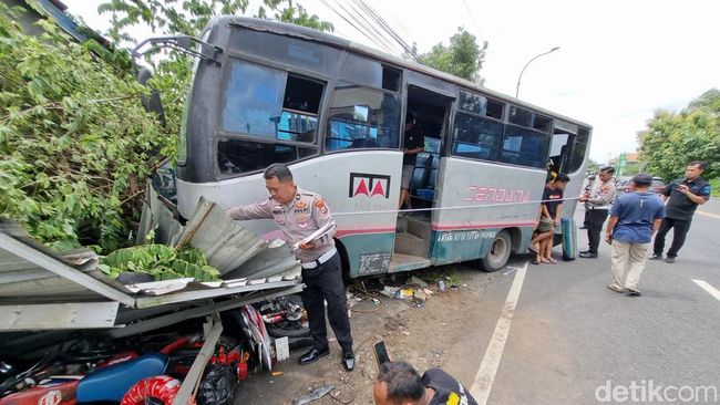 "Sopir bus terhalang pandangan, tidak melihat ada kendaraan yang berbelok, sehingga menghindar dan terpelanting ke kanan, dan menabrak sebuah bengkel," terang Cholik.