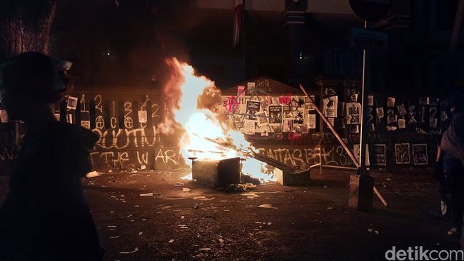 Demo menolak UU TNI di DPRD Kota Malang ricuh. Massa melakukan pelemparan dan membakar ban di depan gedung DPRD Kota Malang.