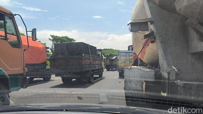 Akibatnya, perjalanannya sudah terganggu. Menuju Gerbang Tol Romokalisar 1 jam, kendaraan merayap, kecepatan 5 Km/kam perjalanan.