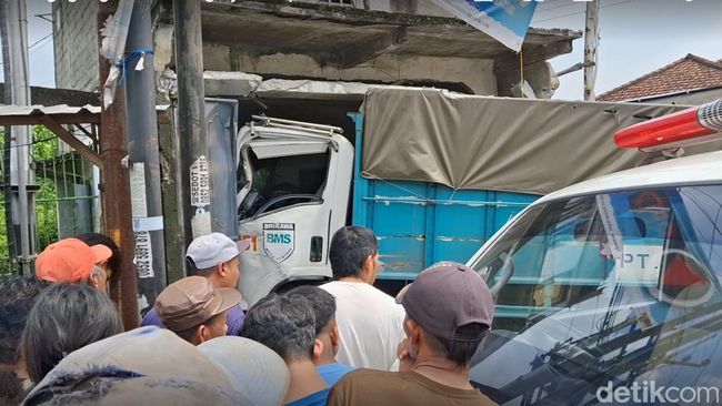"Saat di lokasi kejadian, tiba-tiba truk oleng ke kanan dan menabrak kedua sepeda motor dan baru berhenti setelah menabrak warung," ujarnya.