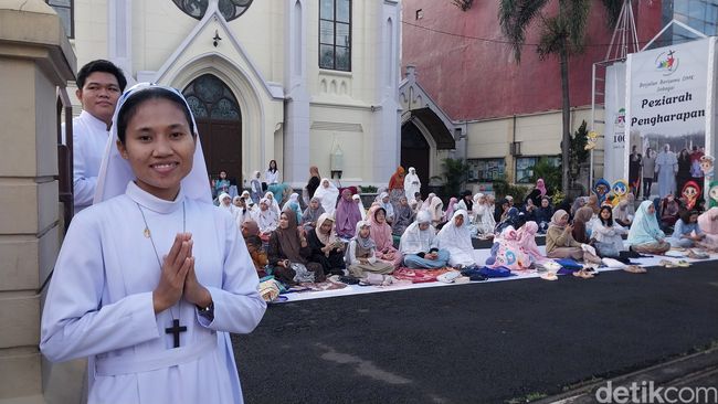 Sejak Senin (31/3/2-25) pagi, nampak pengurus gereja baik romo maupun suster, berdiri di depan pintu pagar gereja yang letaknya sekitar 300 meter dari masjid Agung Jami.