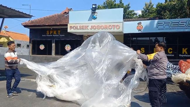 Polisi menggagalkan penerbangan enam balon udara di Kecamatan Jogoroto, Jombang. Korps Bhayangkara sebatas menyita balon udara, sebab tak bisa memberi sanksi kepada para pembuatnya.