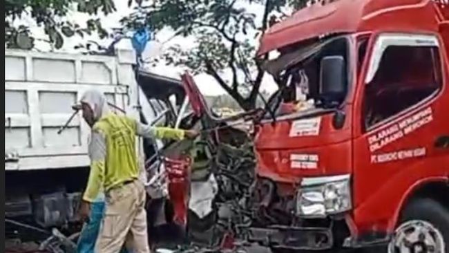 "Sempat terjepit tadi yang pengemudi truk dump," ujar Muhklis saksi di lokasi kepada detikJatim, Selasa (8/3/2025).