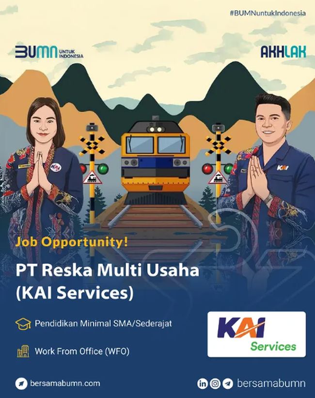 Kabar baik buat pencari kerja. PT Reska Multi Usaha (KAI Services), anak perusahaan BUMN PT KAI, kembali membuka lowongan kerja terbaru pada April 2025. Salah satu posisi yang dibuka adalah pramugara dan pramugari kereta api.