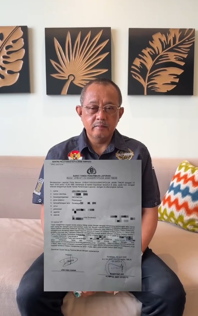 "Saya dilaporkan Han Jua Diana di Polda. Terima kasih atas laporannya Han Jua Diana. Dan ini masyarakat agar bisa menyikapi secara profesional, objektif, apa yang saya lakukan adalah untuk membela kebenaran, membela anak-anak tertindas. Wong ijazah ditahan sekolah, sama provinsi dibebaskan tanpa biaya. Ini orang mau resign kerjaan ijazah yang ditempuh dalam waktu 3 tahun kok ditahan," katanya.