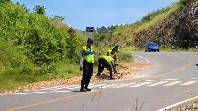 "Tindakan personel dalam membantu membersihkan jalan ini sangat mulai. Jadi para pengendara dapat melintas aman, dan tidak terganggu dengan material yang menutup jalan," terangnya.