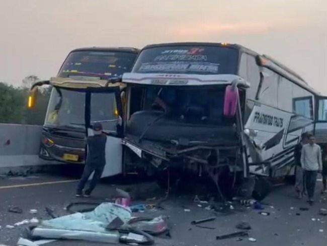 "Busnya bagian depan hancur. Ini belum dapat info kelanjutannya seperti apa," katanya.