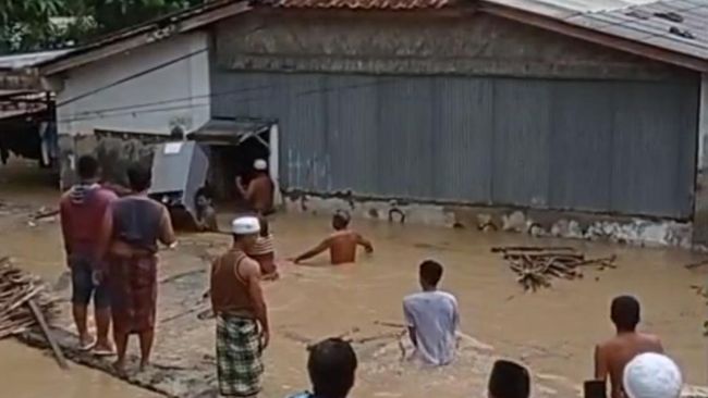 Dalam video yang beredar, terekam detik-detik saat air sungai mulai masuk permukiman warga. Air datang tiba-tiba sehingga warga panik dan berusaha mengevakuasi 2 anak kecil yang terseret arus.