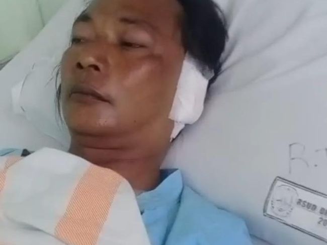 Dalam sebuah video yang beredar di media sosial, tampak korban terbaring tak sadarkan diri di sebuah puskesmas. Kepala ikan yang telah dipotong, masih menancap di bagian telinga korban, dengan moncongnya tertancap tepat di lubang telinga.