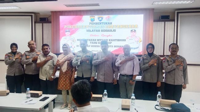 Polresta Sidoarjo Polda Jatim resmi membentuk Pengurus Kelompok Sadar Keamanan dan Ketertiban Masyarakat (Pokdarkamtibmas) Bhayangkara. Pembentukan ini digelar di Mako Polresta Sidoarjo, Kamis (17/4/2025), sebagai langkah sinergi konkret antara Polri dan masyarakat.