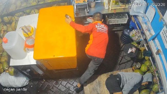 Pencurian tersebut terjadi di diduga di sebuah warung pada Kamis (17/4/2025). Dalam video tampak seorang pria berseragam DPRKPCKTR Surabaya mengambil barang berharga, sedangkan seorang lain diduga pemiliknya tertidur di bawah.
