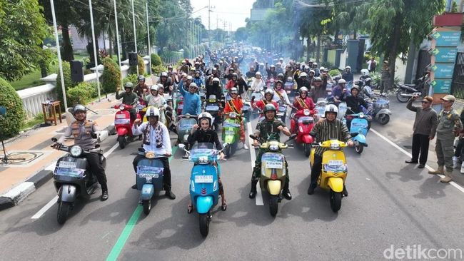 Ratusan perempuan penggemar Vespa menebar semangat Kartini sekaligus cinta lingkungan di Kota Kediri. Mereka berkeliling kota dengan mengenakan kebaya dan pakaian adat, lalu menutup kegiatan dengan menanam bibit pohon di kawasan Gunung Klotok, Senin (21/4/2025).